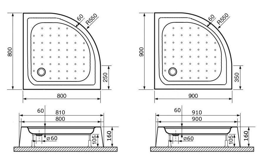 Акриловый поддон для душа полукруглый R-550 Подробнее