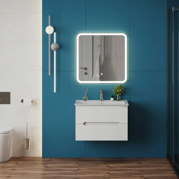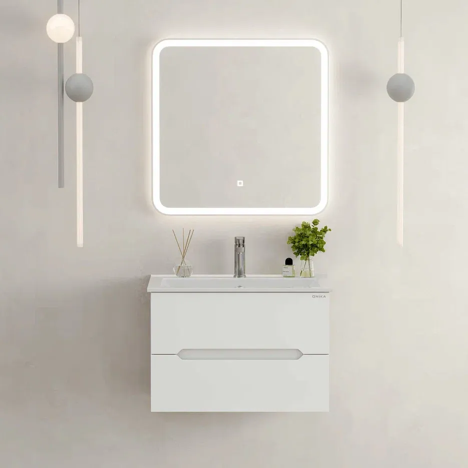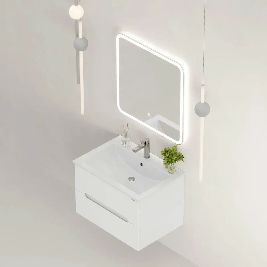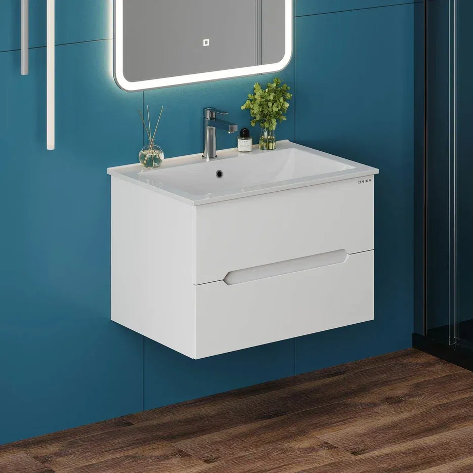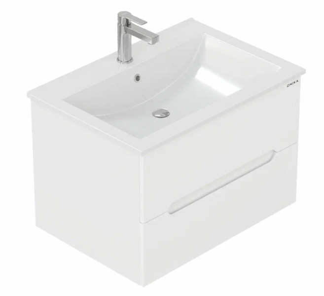 Подвесная тумба под раковину Onika Айленд 70 сочетает в себе стильный минималистичный дизайн, белую глянцевую поверхность и высочайшее качество исполнения.