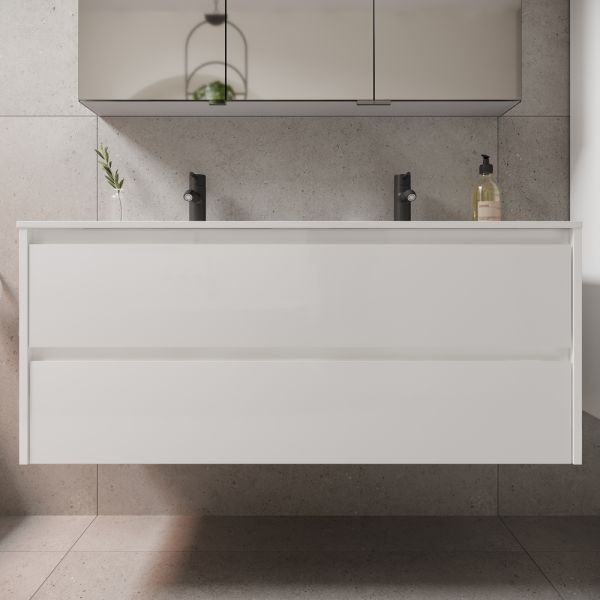 Подвесная тумба под двойную раковину Sancos Libra LB120-2W 120см белый глянец