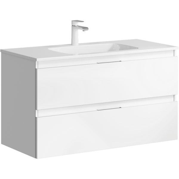 Подвесная тумба под раковину Aqwella Accent ACC0110W 100 смПодвесная тумба с двумя ящиками в белом цвете с умывальником из литьевого мрамора
