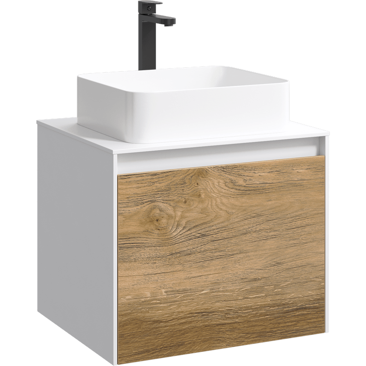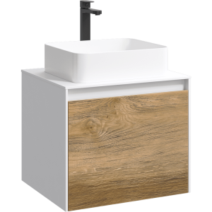 Подвесная тумба под раковину Aqwella Mobi MOB0106W+MOB0706DB 60 смПодвесная тумба 60 см с двумя ящиками: основной и внутренний, скрытый за фасадом. Цвет белый/дуб балтийский; с умывальником