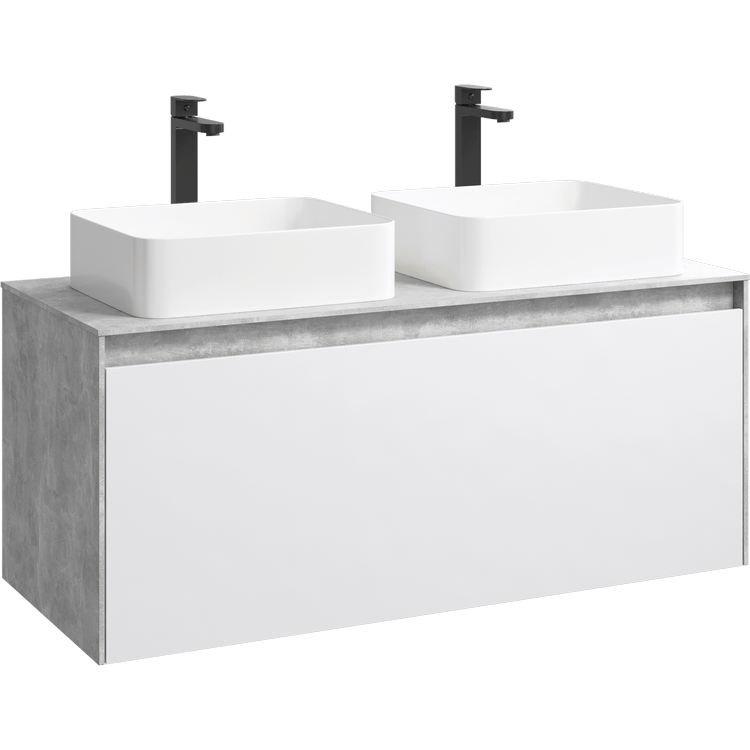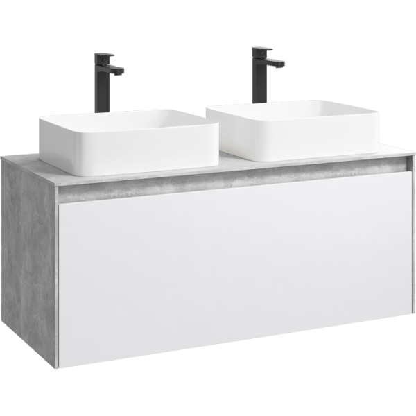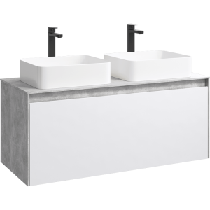 Подвесная тумба под раковину Aqwella Mobi MOB0112BS+MOB0712W 120 смПодвесная тумба 120 см с двумя ящиками: основной и внутренний, скрытый за фасадом. Цвет бетон светлый/дуб балтийский; с умывальником