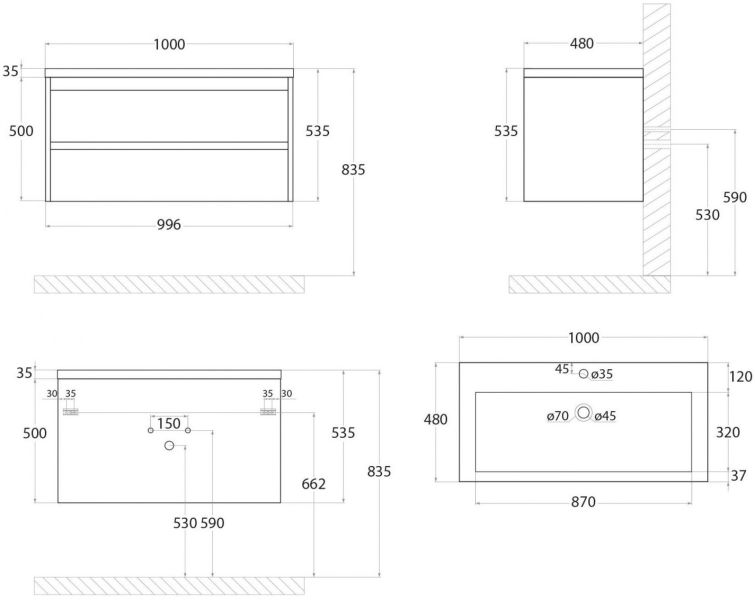 • Рекомендуемая высота от пола: 830 мм