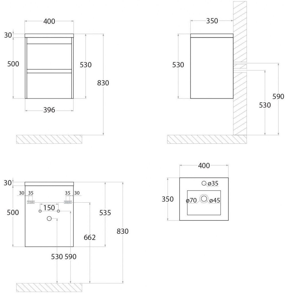 - Рекомендуемая высота от пола: 830 мм