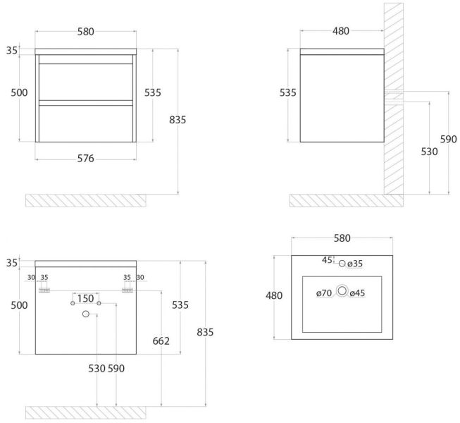 - Рекомендуемая высота от пола: 830 мм