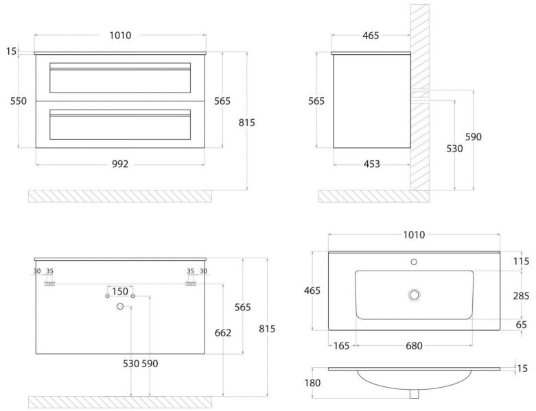 • Рекомендуемая высота от пола: 844 мм