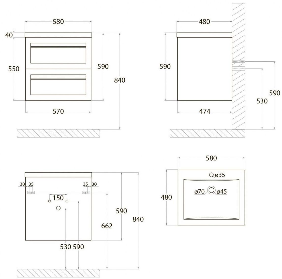 Тумба под раковину Art&Max выполнена в современном стиле и прекрасно впишется в интерьер любой ванной комнаты. Благодаря подвесной конструкции изделие не занимает много места, позволяет экономить пространство и облегчает уборку. Модель оснащена двумя выдвижными ящиками с доводчиками. Фасад изделия выполнен из МДФ.Тумба может использоваться вместе с раковиной AM-LAV-580-MR-A.Раковина и смеситель в комплект поставки не входят и приобретаются отдельно.Особенности: