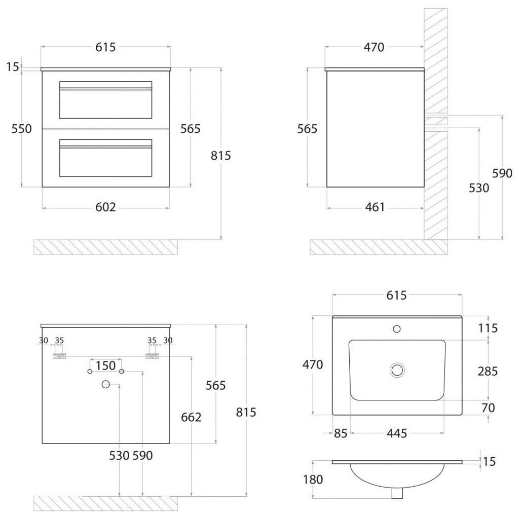 Подвесная тумба под раковину Art&Max Platino 60см серый матовый AM-Platino-600-2C-SO-GM-Cer