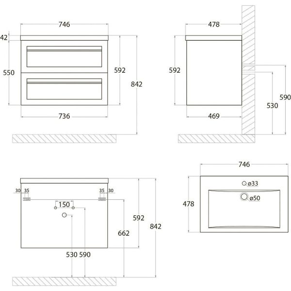• Рекомендуемая высота от пола: 844 мм