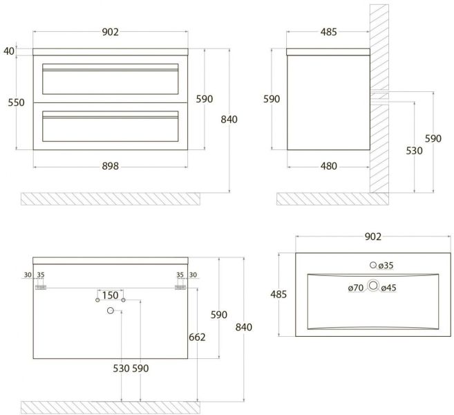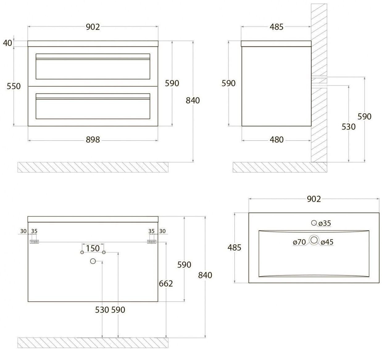 Тумба под раковин Art&Max выполнена в современном стиле и прекрасно впишется в интерьер любой ванной комнаты. Благодаря подвесной конструкции изделие не занимает много места, позволяет экономить пространство и облегчает уборку. Модель оснащена двумя выдвижными ящиками с доводчиками. Фасад изделия выполнен из МДФ.Тумба может использоваться вместе с раковиной AM-LAV-900-MR-A.Раковина и смеситель в комплект поставки не входят и приобретаются отдельно.Особенности: