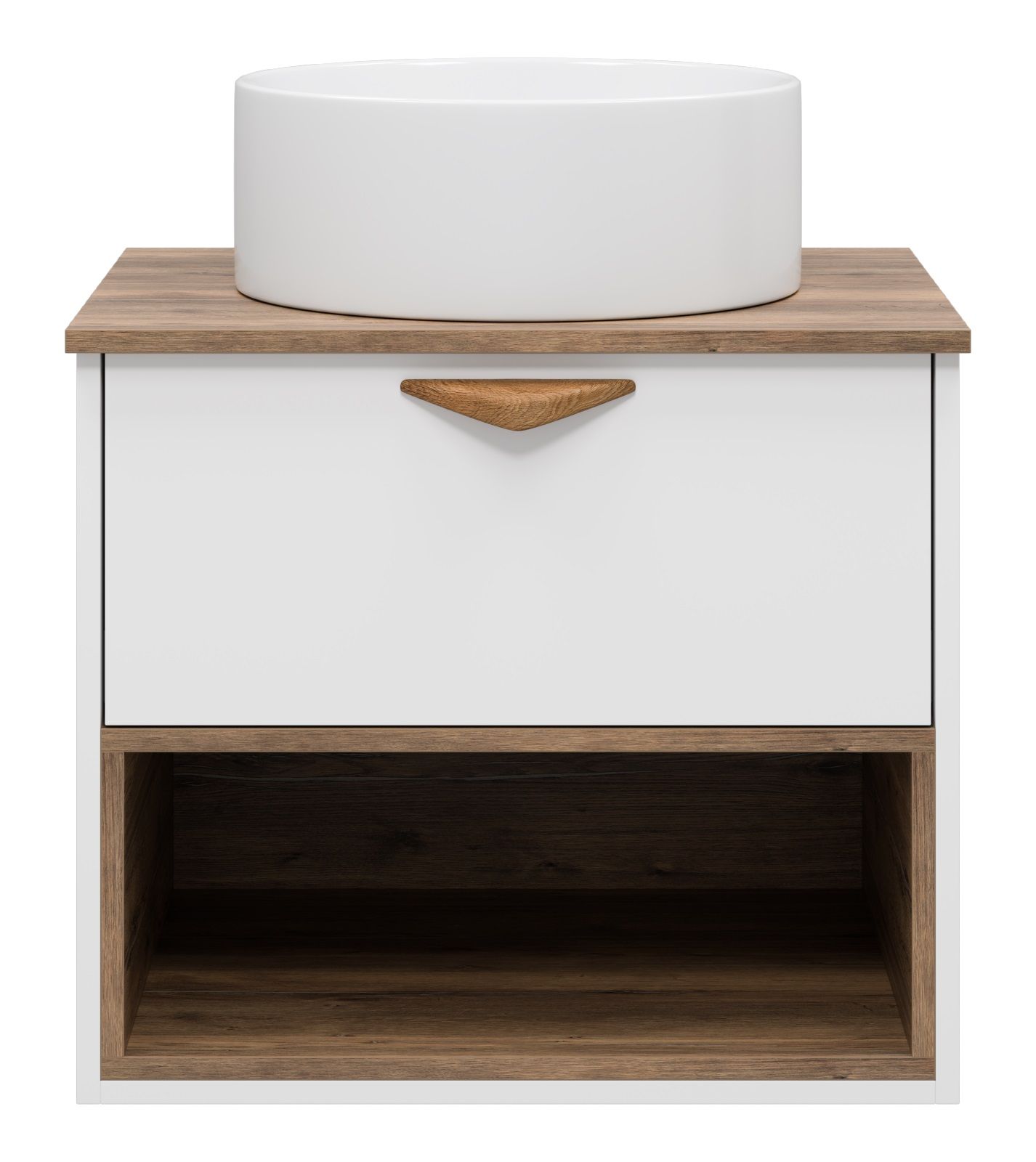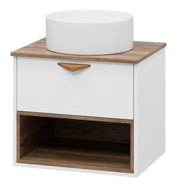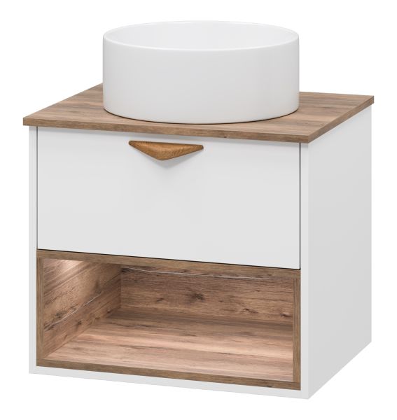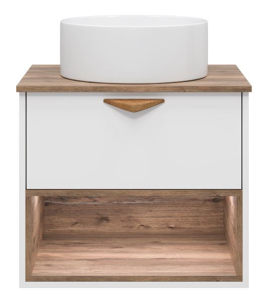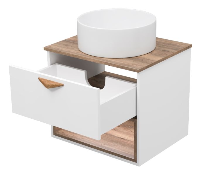Подвесная тумба под раковину Brevita Bergen BER-07060-19-01-1Я с подсветкой 60см дуб Галифакс олово/белый