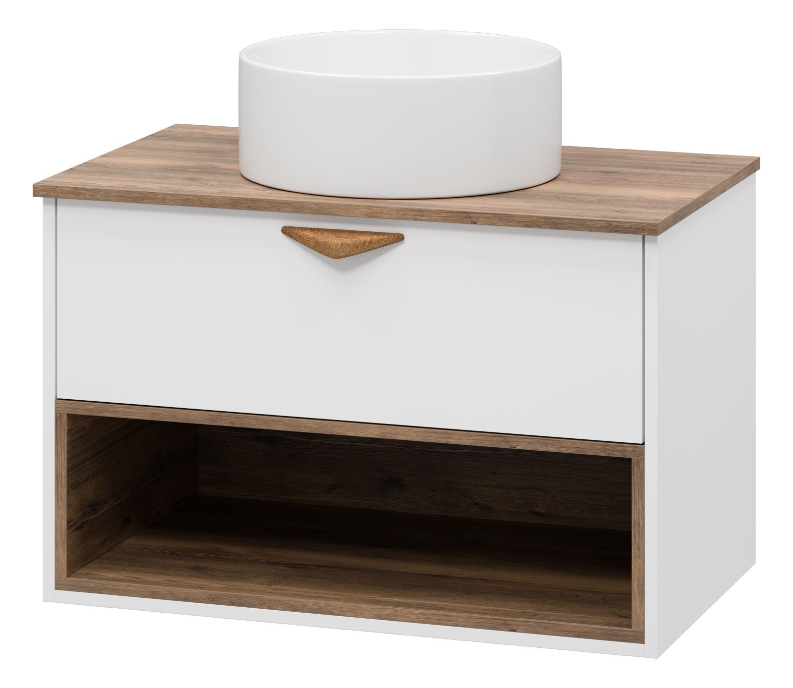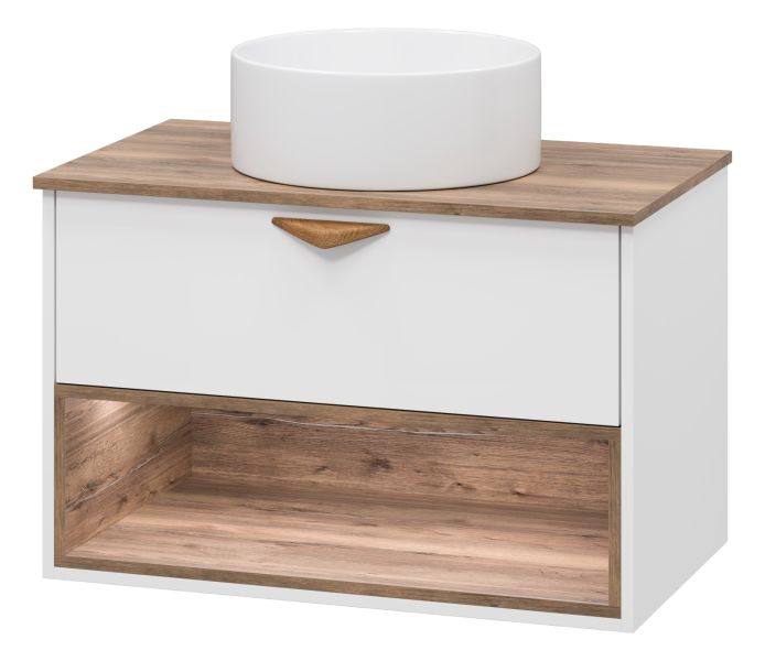 Подвесная тумба под раковину Brevita Bergen BER-07080-19-01-1Я с подсветкой 80см дуб Галифакс олово/белый