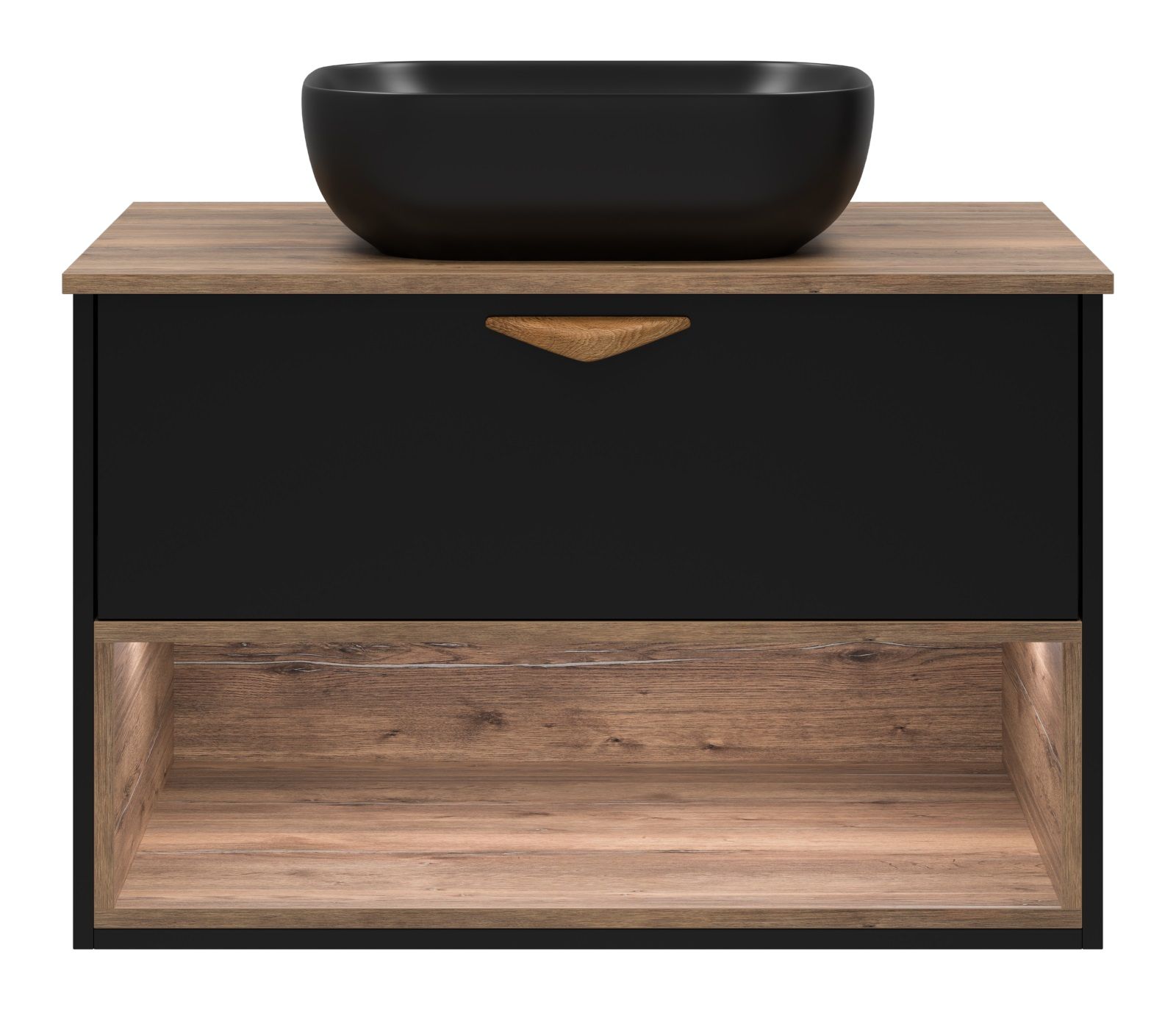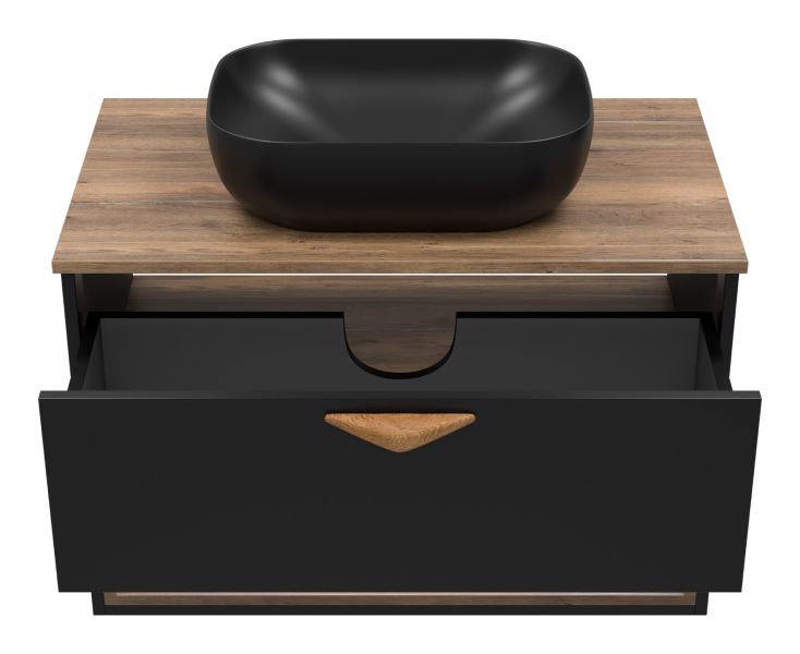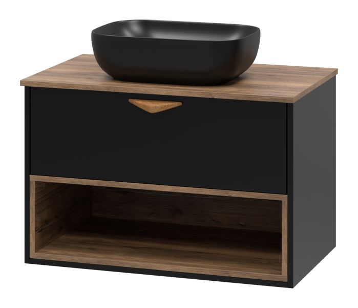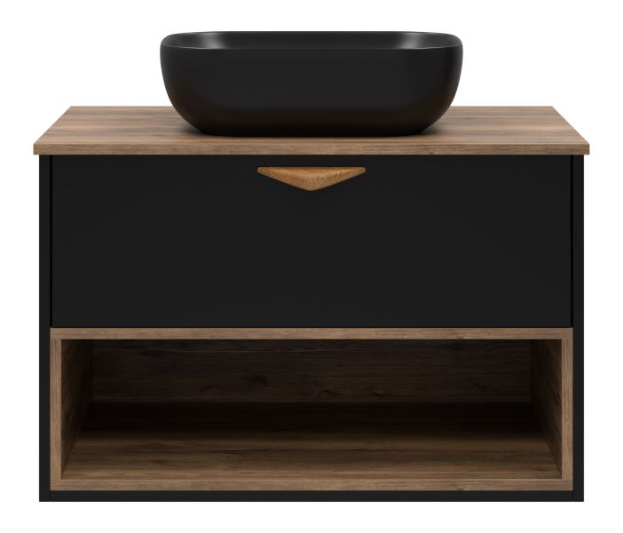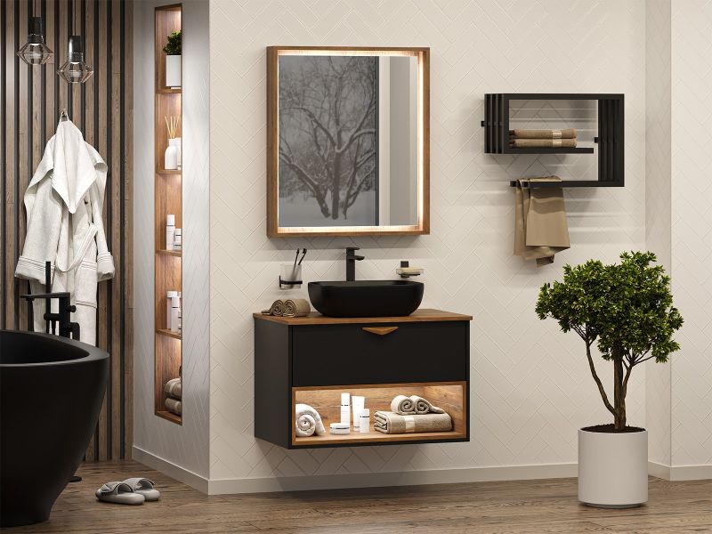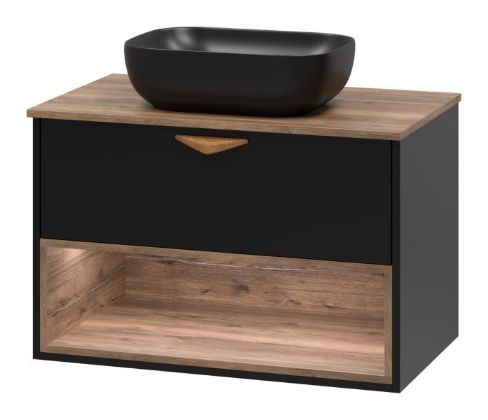 Подвесная тумба под раковину Brevita Bergen BER-07080-19-02-1Я с подсветкой 80см дуб Галифакс олово/чёрный