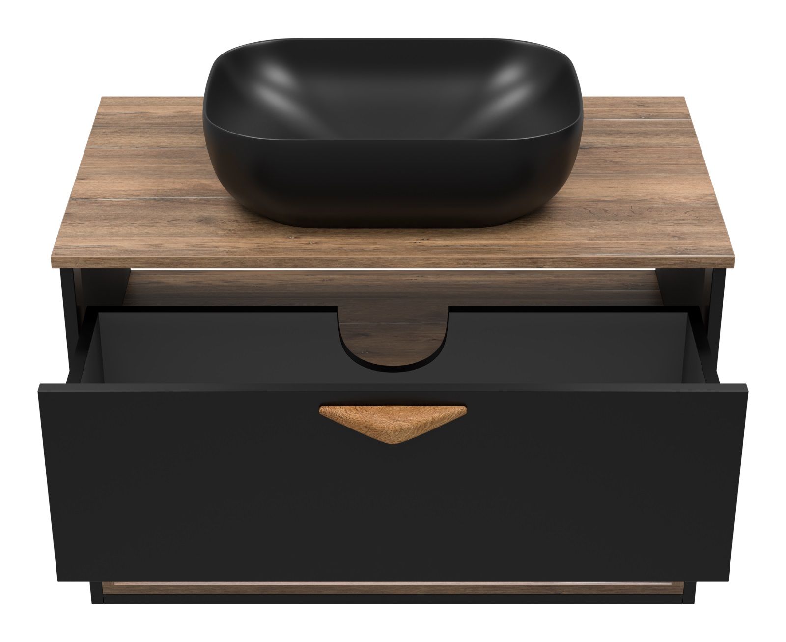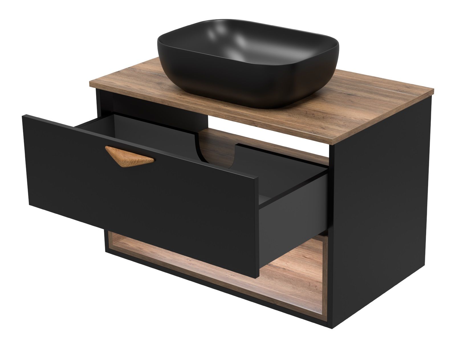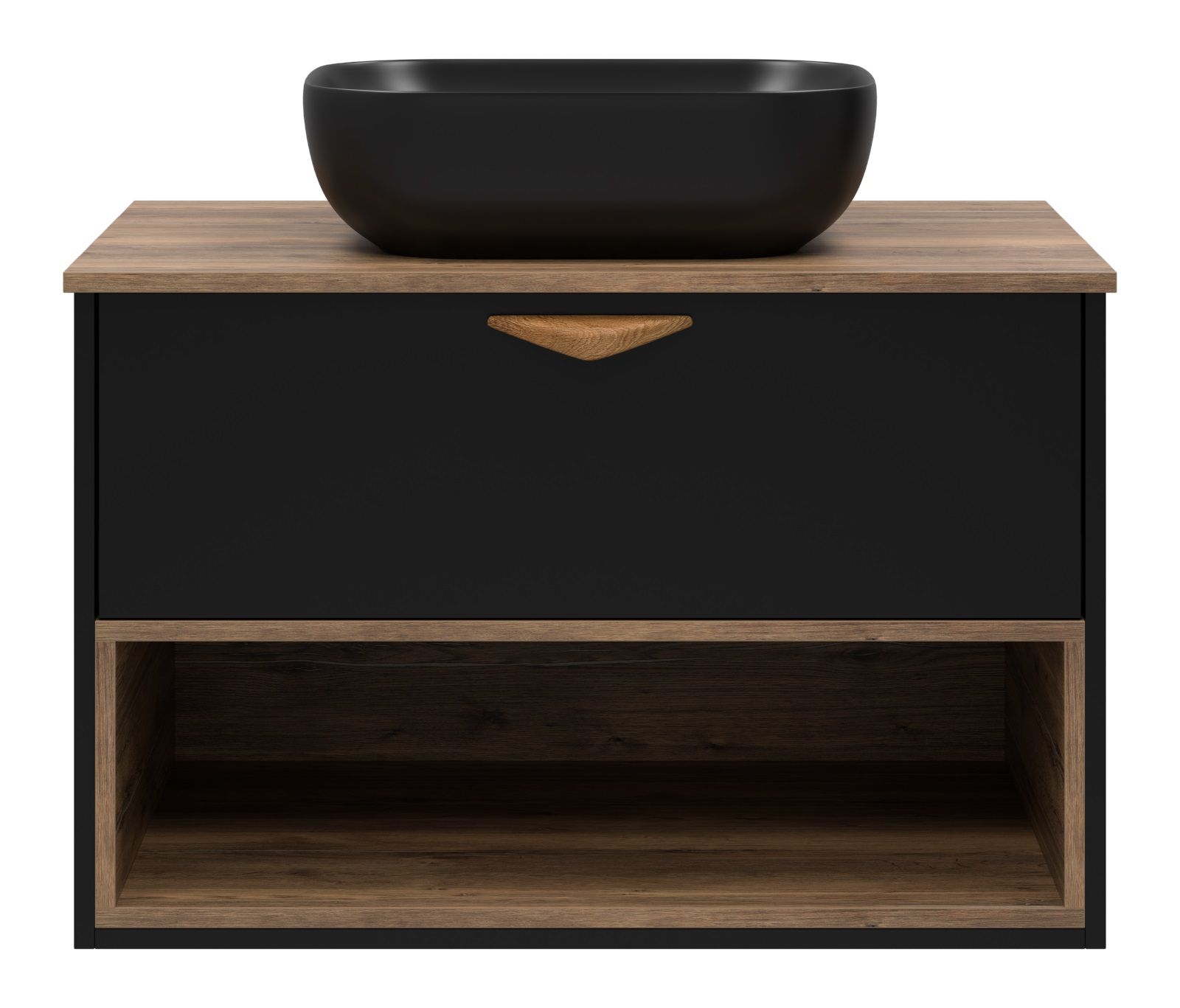 Подвесная тумба под раковину Brevita Bergen BER-07080-19-02-1Я с подсветкой 80см дуб Галифакс олово/чёрный