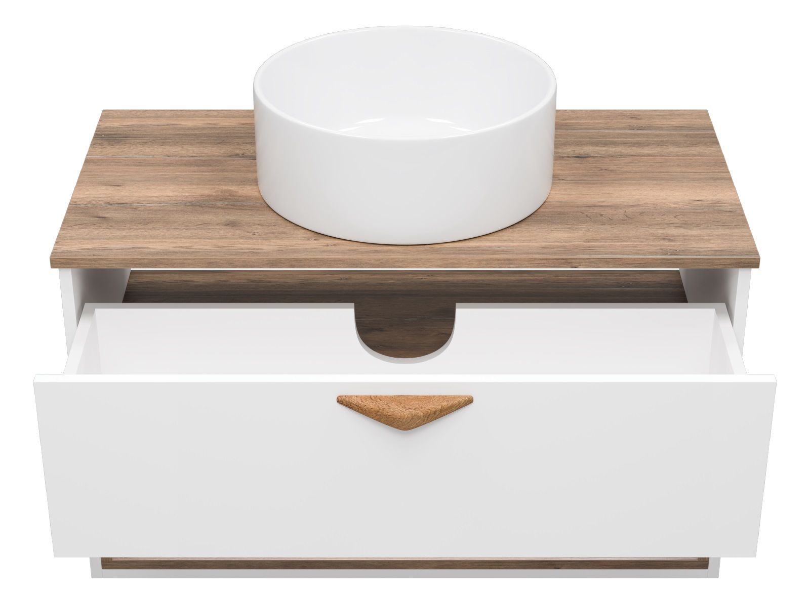 Подвесная тумба под раковину Brevita Bergen BER-07090-19-01-1Я с подсветкой 90см дуб Галифакс олово/белый