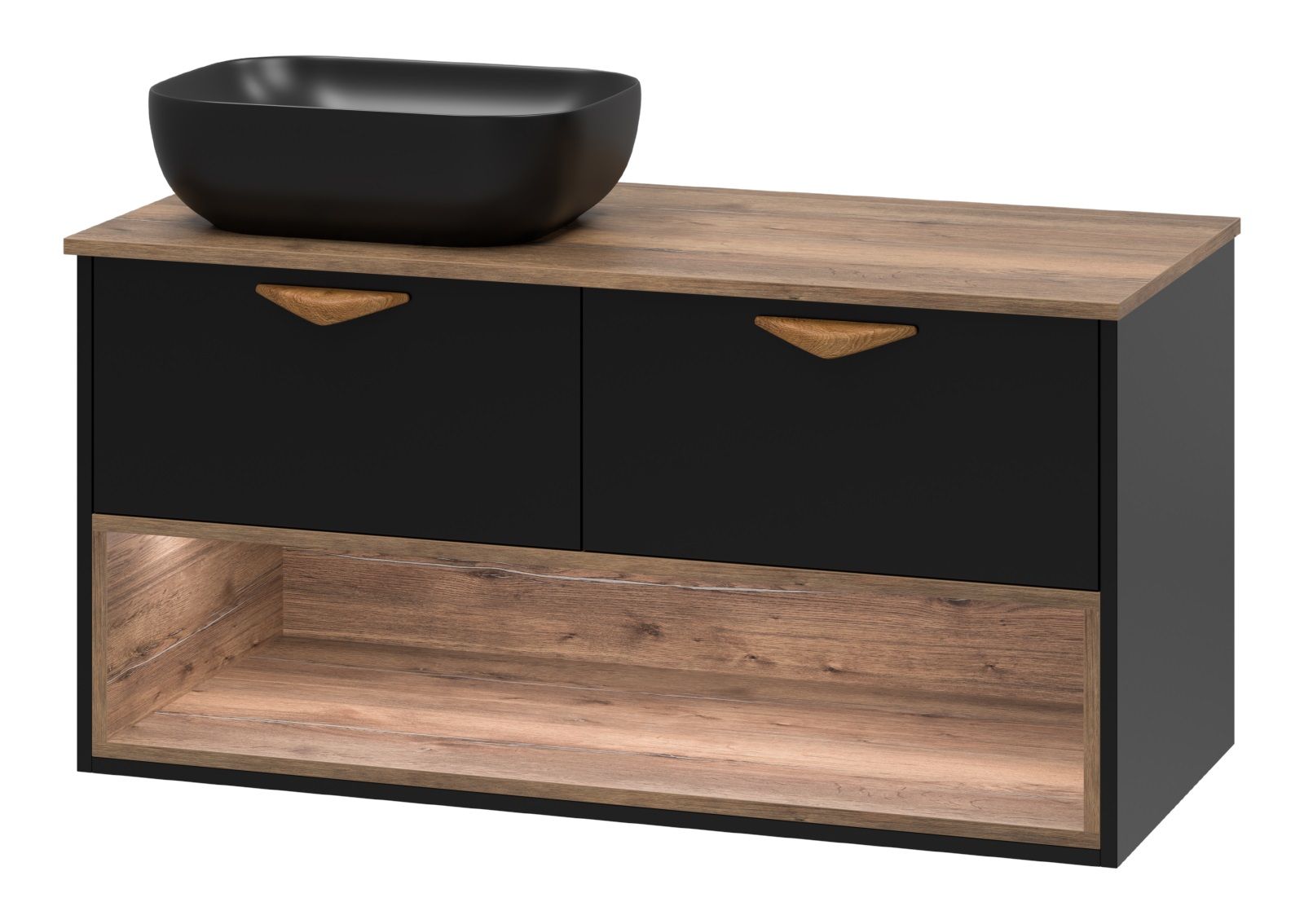 Подвесная тумба под раковину Brevita Bergen с подсветкой BER-07105-19-02-2Я 105см дуб Галифакс олово/чёрный купить