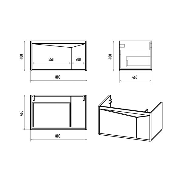 Размер мебели, мм (ш/г/в): 800x460x400