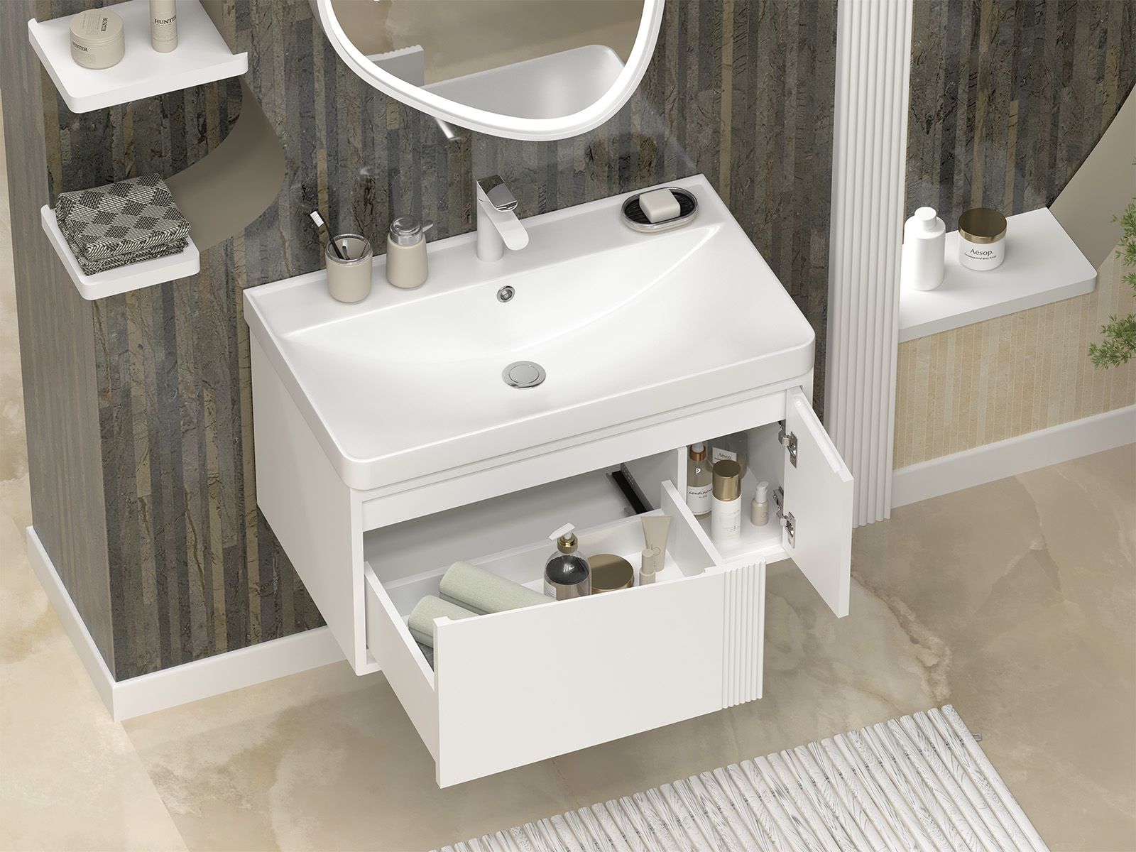 Подвесная тумба под раковину Brevita Cascade УТ000026695 80 см белый Подробнее
