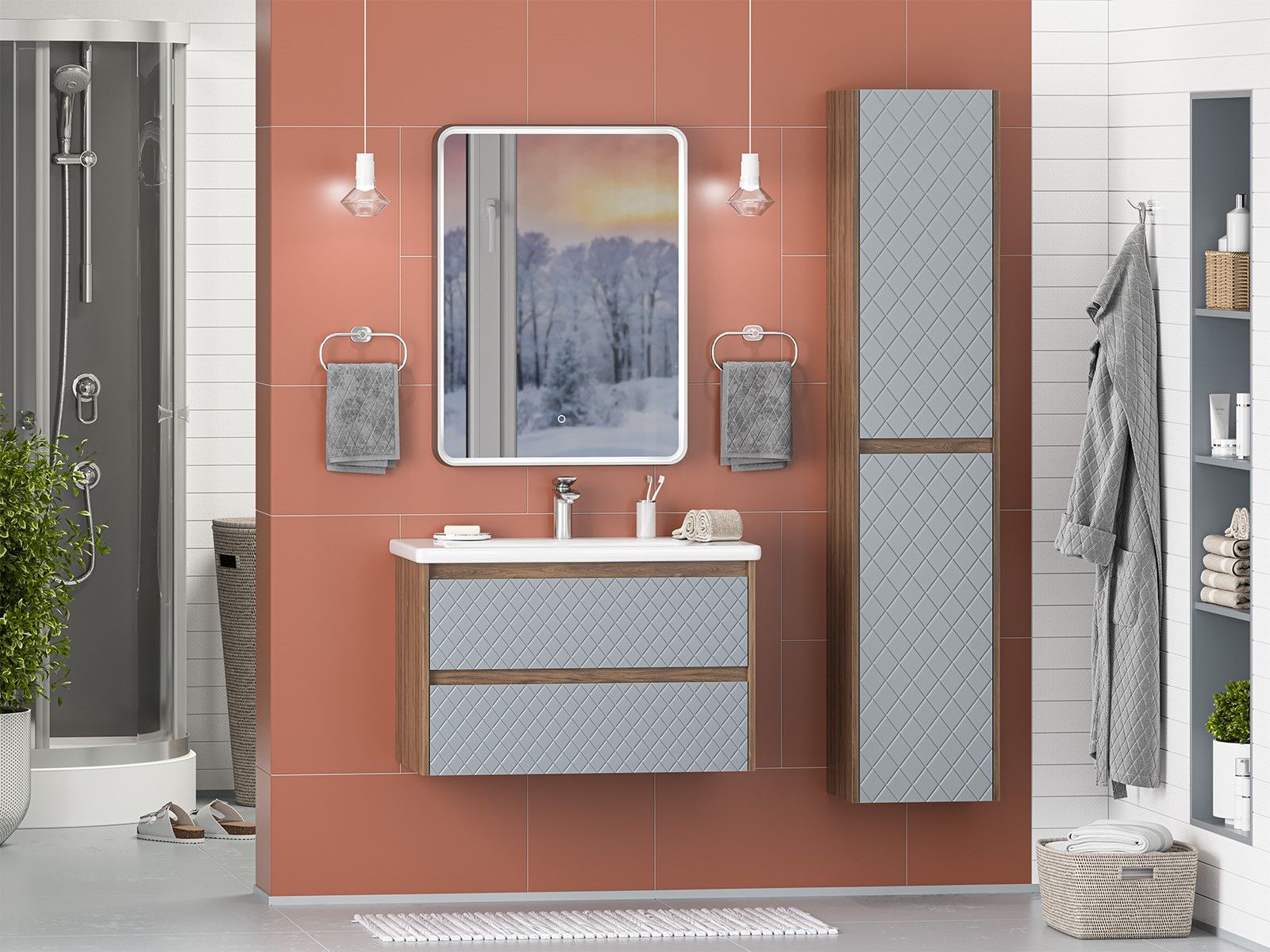 Подвесная тумба под раковину Brevita Chester CHE-09080-49502Я 80см серый/дуб Чарльстон темно-коричневый купить