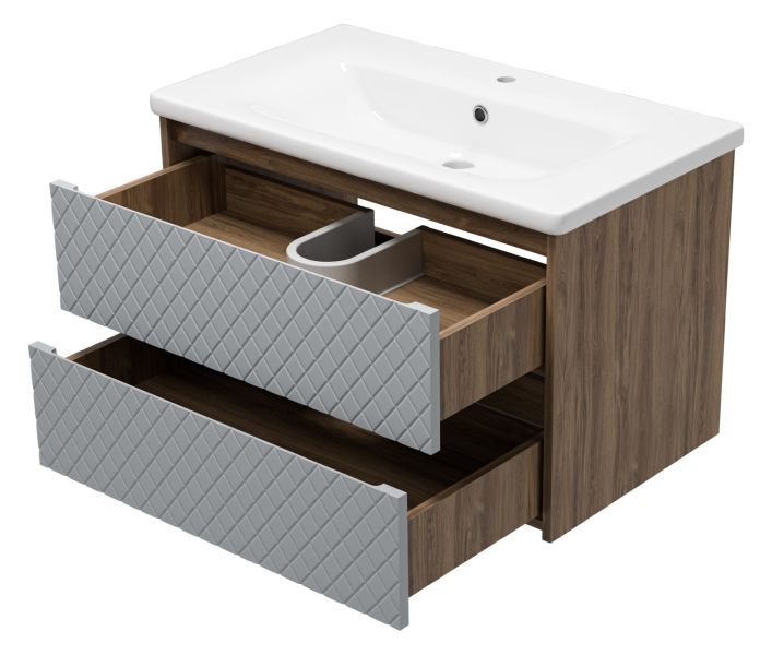 Подвесная тумба под раковину Brevita Chester CHE-09080-49502Я 80см серый/дуб Чарльстон темно-коричневый