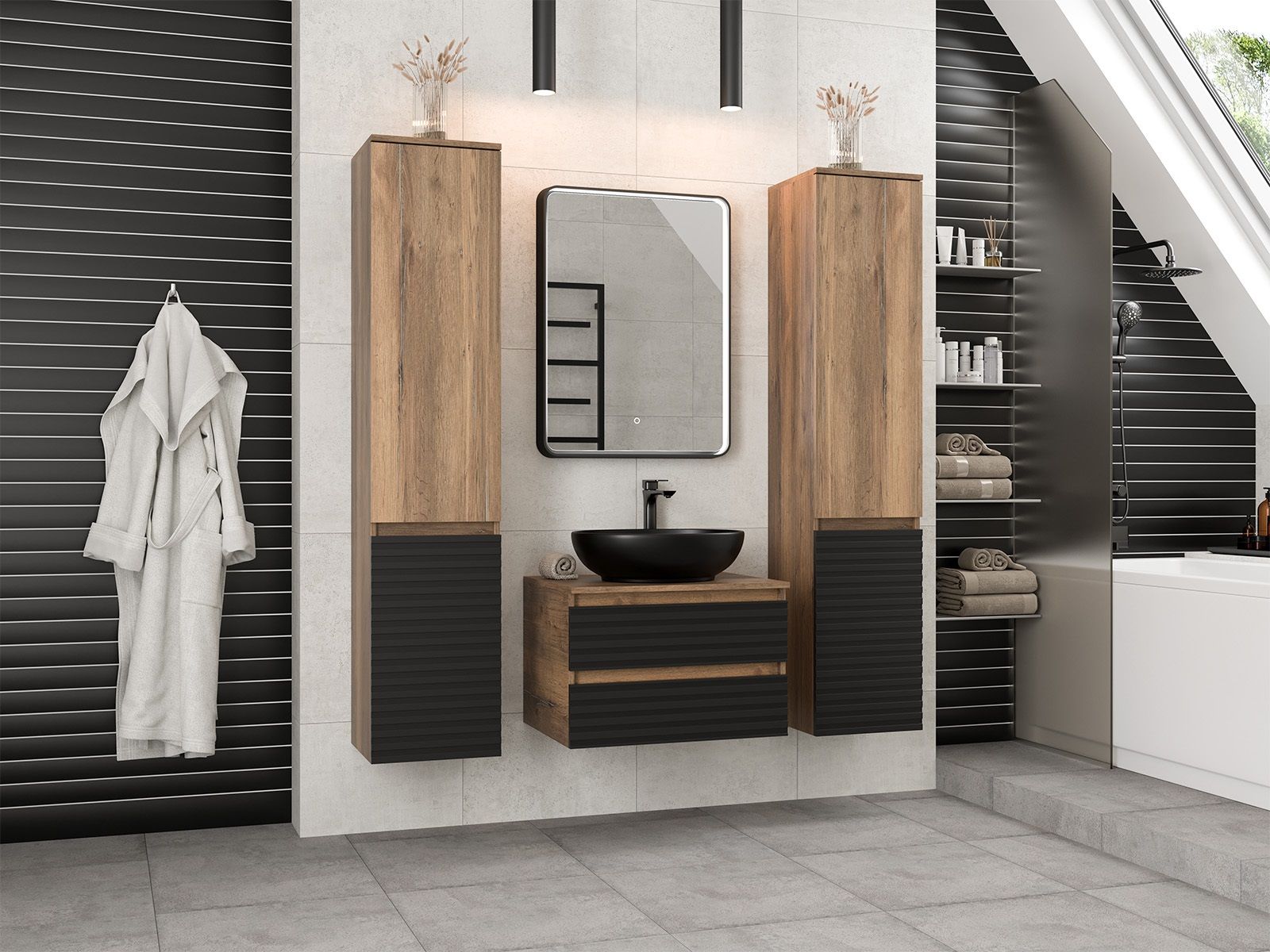 Подвесная тумба под раковину Brevita Dakota DAK-09060-19/02-2Я 60см дуб Галифакс олово/чёрный купить