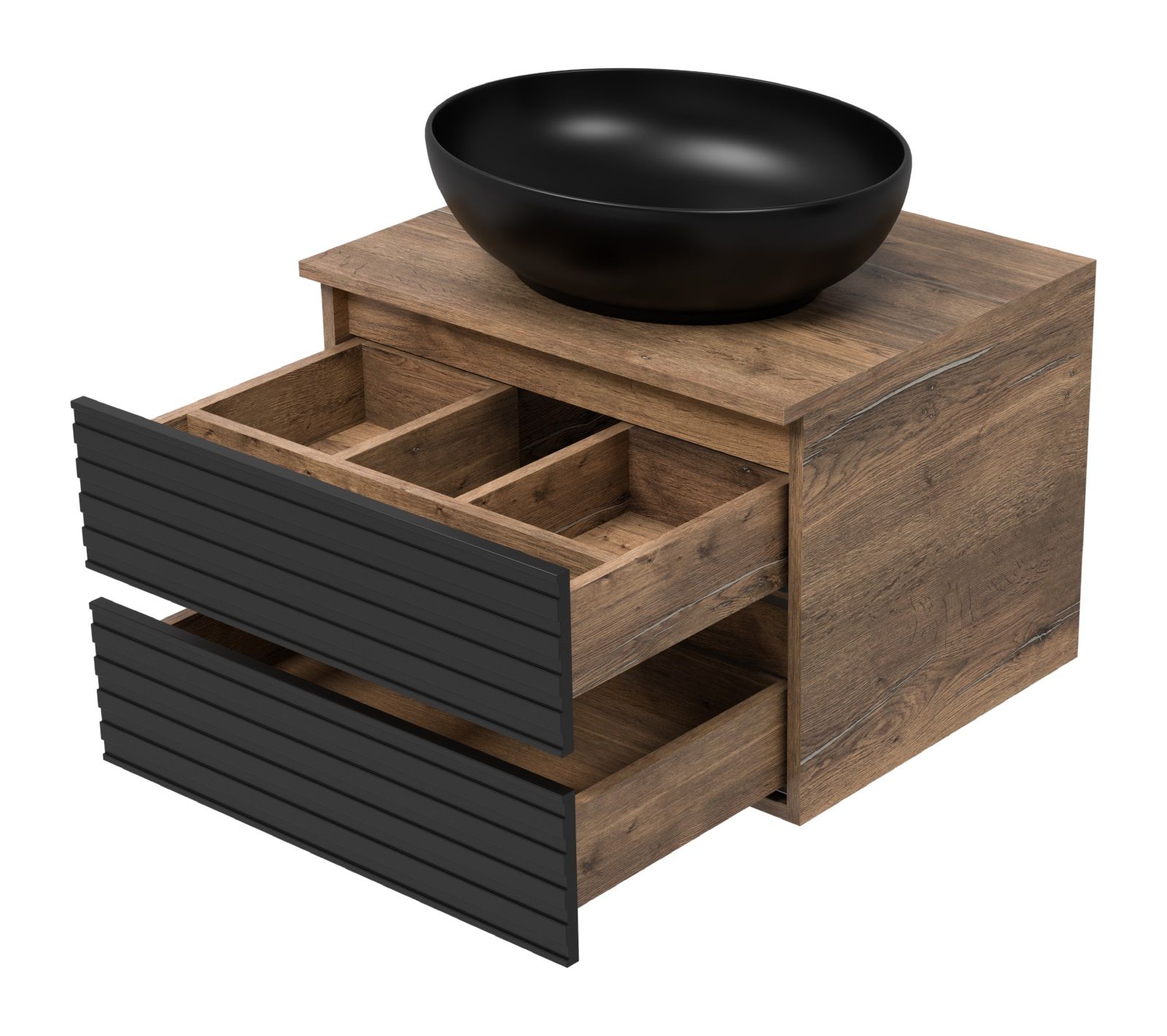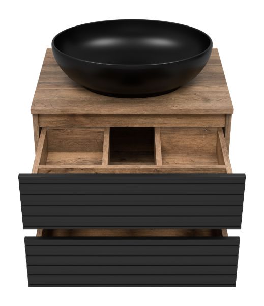 Подвесная тумба под раковину Brevita Dakota DAK-09060-19/02-2Я 60см дуб Галифакс олово/чёрный