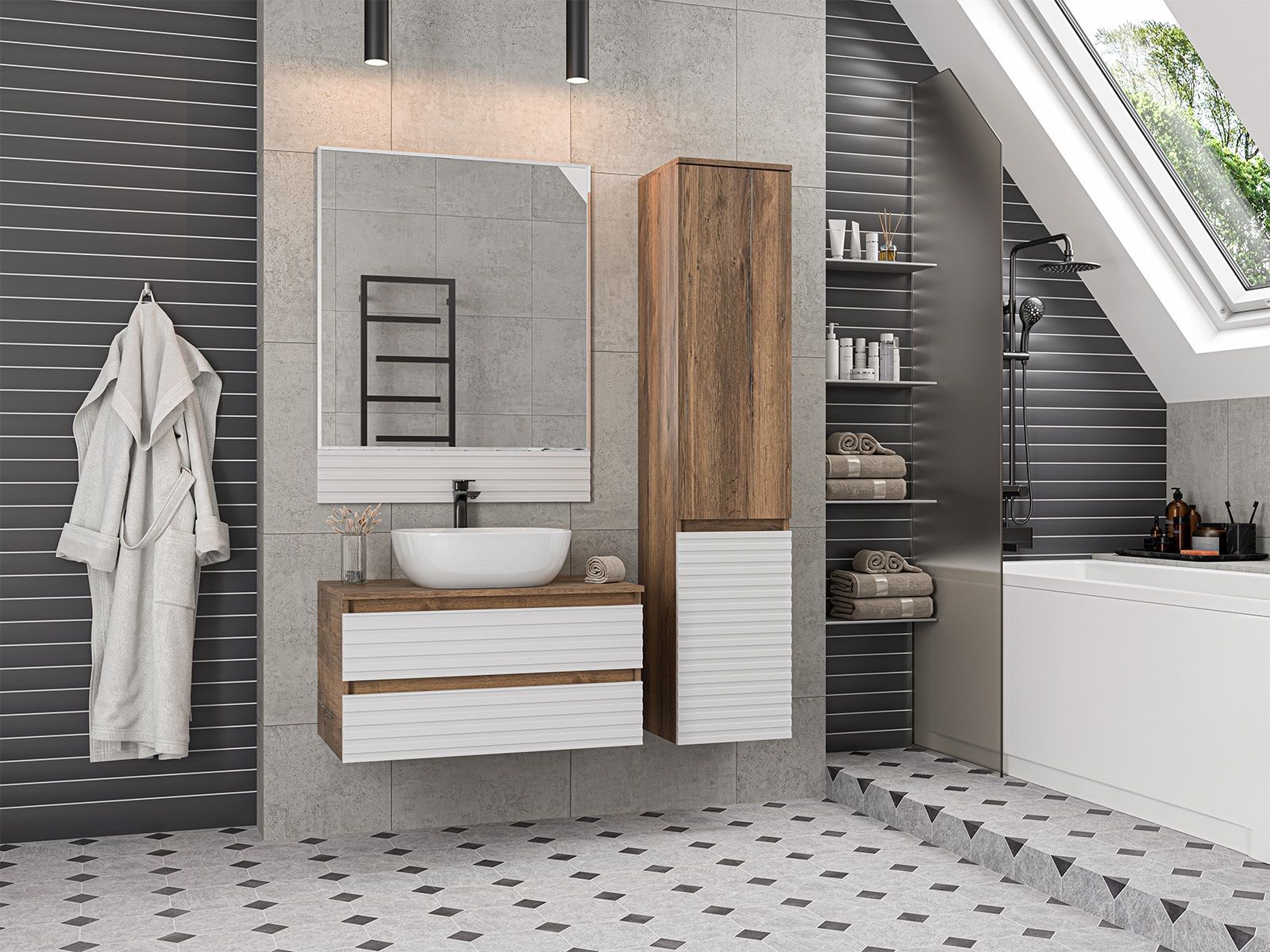 Подвесная тумба под раковину Brevita Dakota DAK-09080-19/01-2Я 80см дуб Галифакс олово/белый