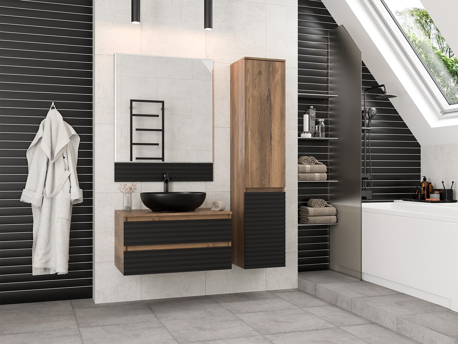 Подвесная тумба — это не просто место для хранения, а полноценный элемент дизайна интерьера. Она придаёт ванной комнате лёгкость, визуально увеличивает пространство и создаёт ощущение порядка и уюта.Благодаря отсутствию контакта с полом такая мебель облегчает уборку и добавляет помещению современности. Внутренняя организация может включать выдвижные ящики, открытые полки или закрытые секции — всё зависит от ваших потребностей в хранении.Широкий выбор цветов, материалов и стилей позволяет подобрать тумбу под любой интерьер — от строгого минимализма до классической элегантности. Такой элемент мебели становится не просто удобным решением, но и заметным декоративным акцентом, завершающим образ вашей ванной комнаты.