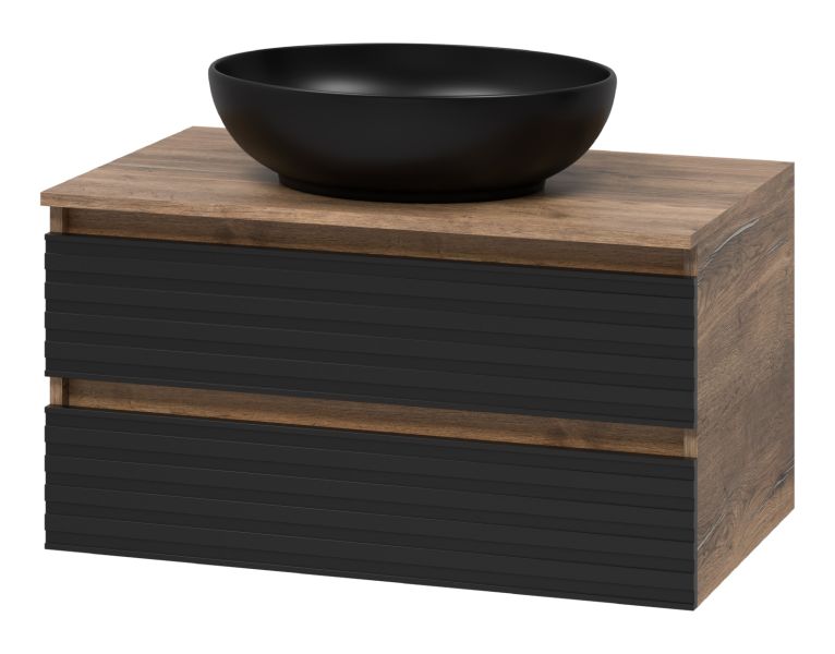 Подвесная тумба под раковину Brevita Dakota DAK-09080-19/02-2Я 80см дуб Галифакс олово/чёрный
