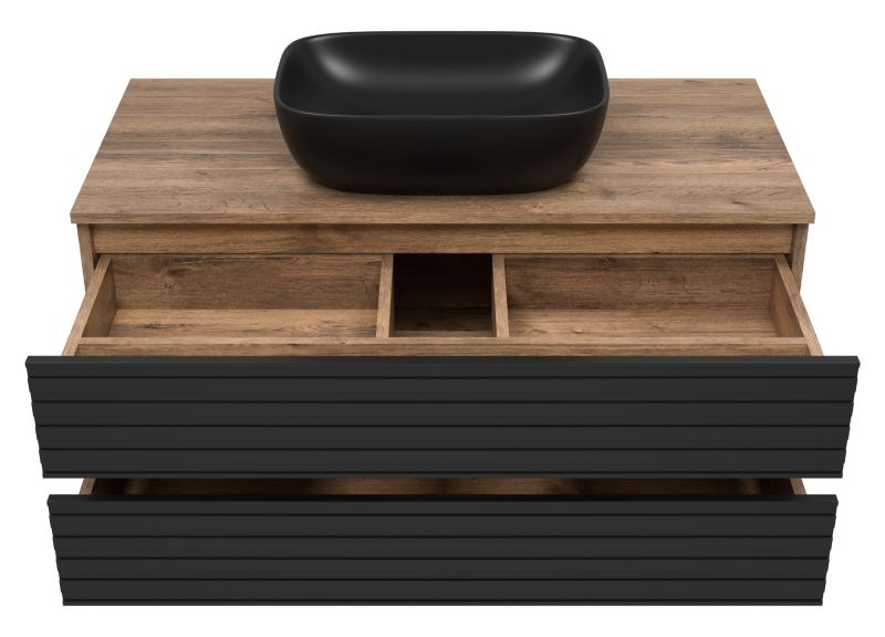 Подвесная тумба под раковину Brevita Dakota DAK-09100-19/02-2Я 100см дуб Галифакс олово/чёрный