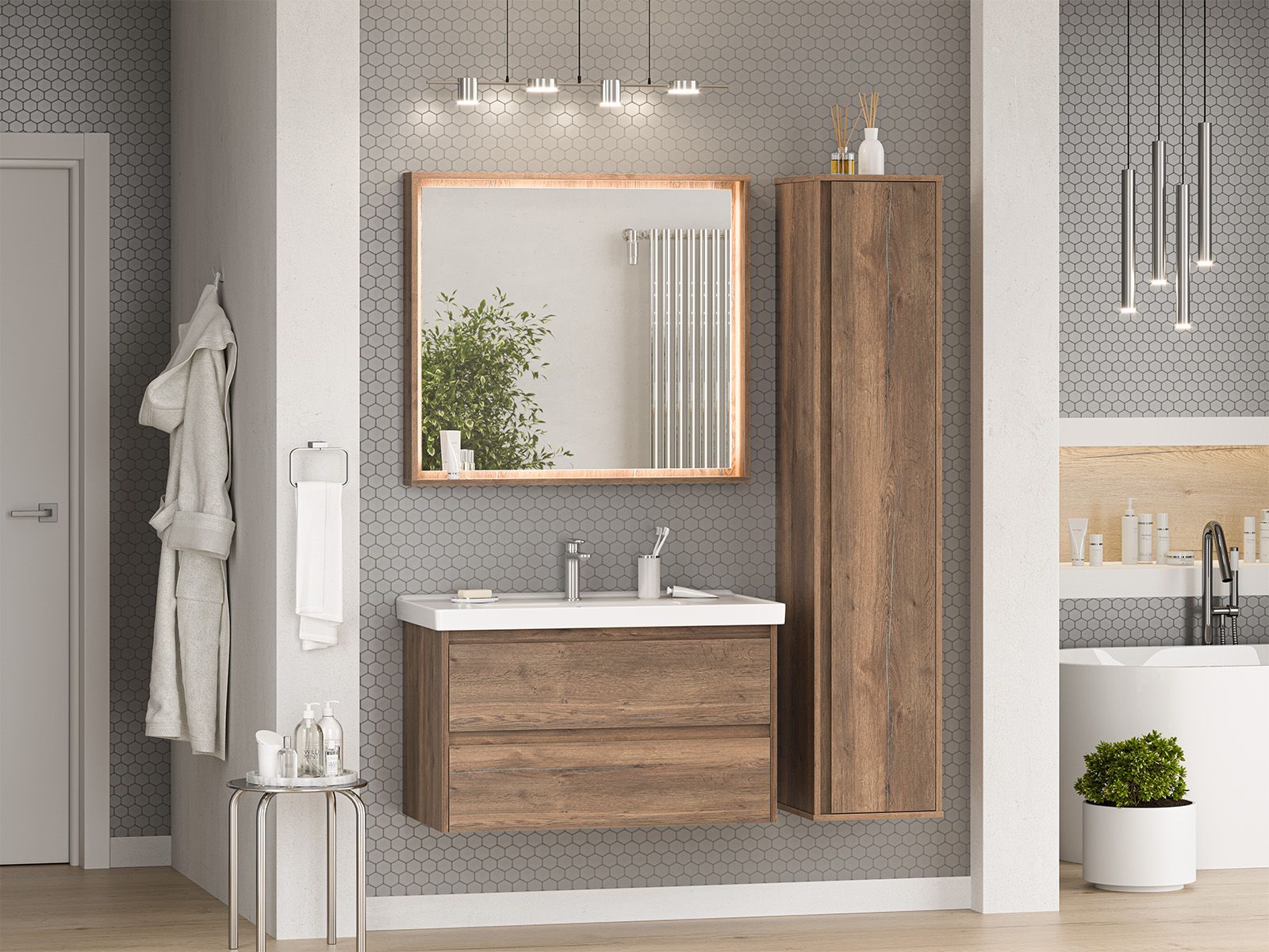 Подвесная тумба в ванную комнату – это не просто элемент мебели, а подлинный акцент в интерьере, который сочетает в себе функциональность и стиль. Она придаёт помещению лёгкость и воздушность, освобождая пространство на полу и создавая иллюзию большего объёма.Функциональные особенности таких тумб варьируются от наличия выдвижных ящиков до встроенных систем хранения, которые помогают организовать пространство ванной комнаты. Важным аспектом является также возможность выбора различных цветовых решений и отделок, что позволяет гармонично вписать тумбу в любой интерьер – от классического до ультрасовременного.С помощью подвесной тумбы ванная комната становится не только более удобной, но и эстетически привлекательной, создавая атмосферу уюта и роскоши.