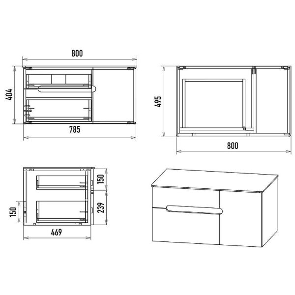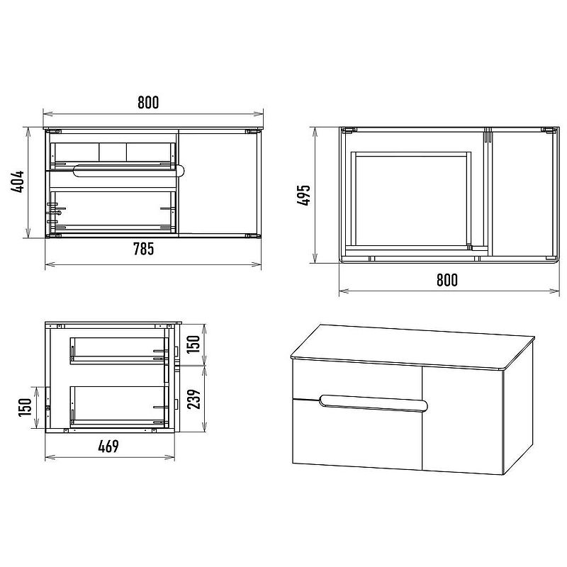 Габариты корпуса тумбы (ШхВхГ): 785х404х495 мм.