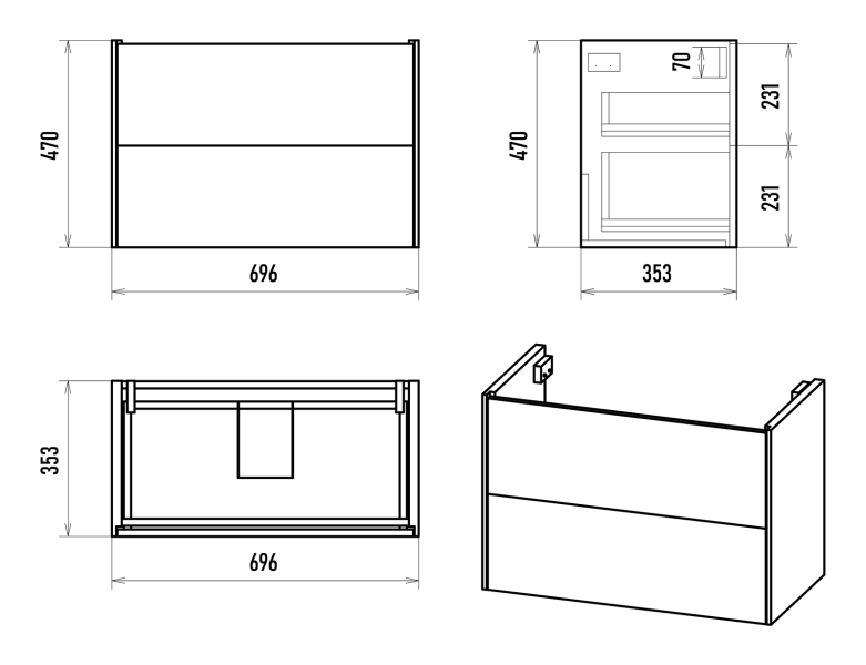 Размер мебели, мм (ш/г/в): 696x353x470