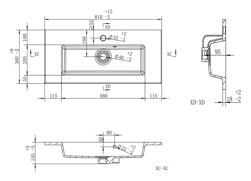 Размер раковины, мм (ш/г/в): 810x360x145