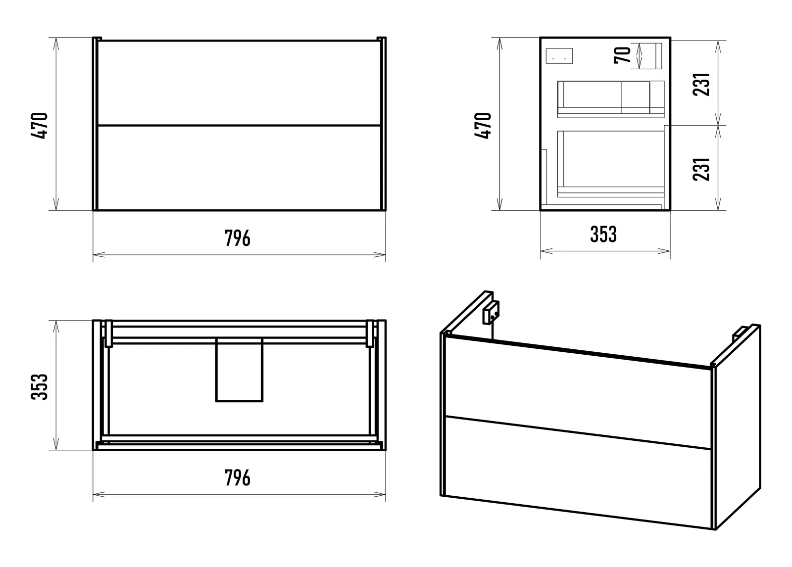 Размер мебели, мм (ш/г/в): 796x353x470