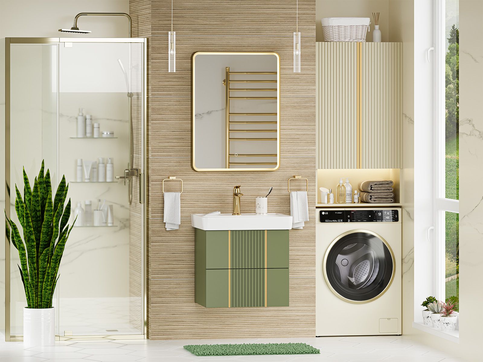 Подвесная тумба под раковину Brevita Vega VEG-09060-0802Я 60см зелёный/золото