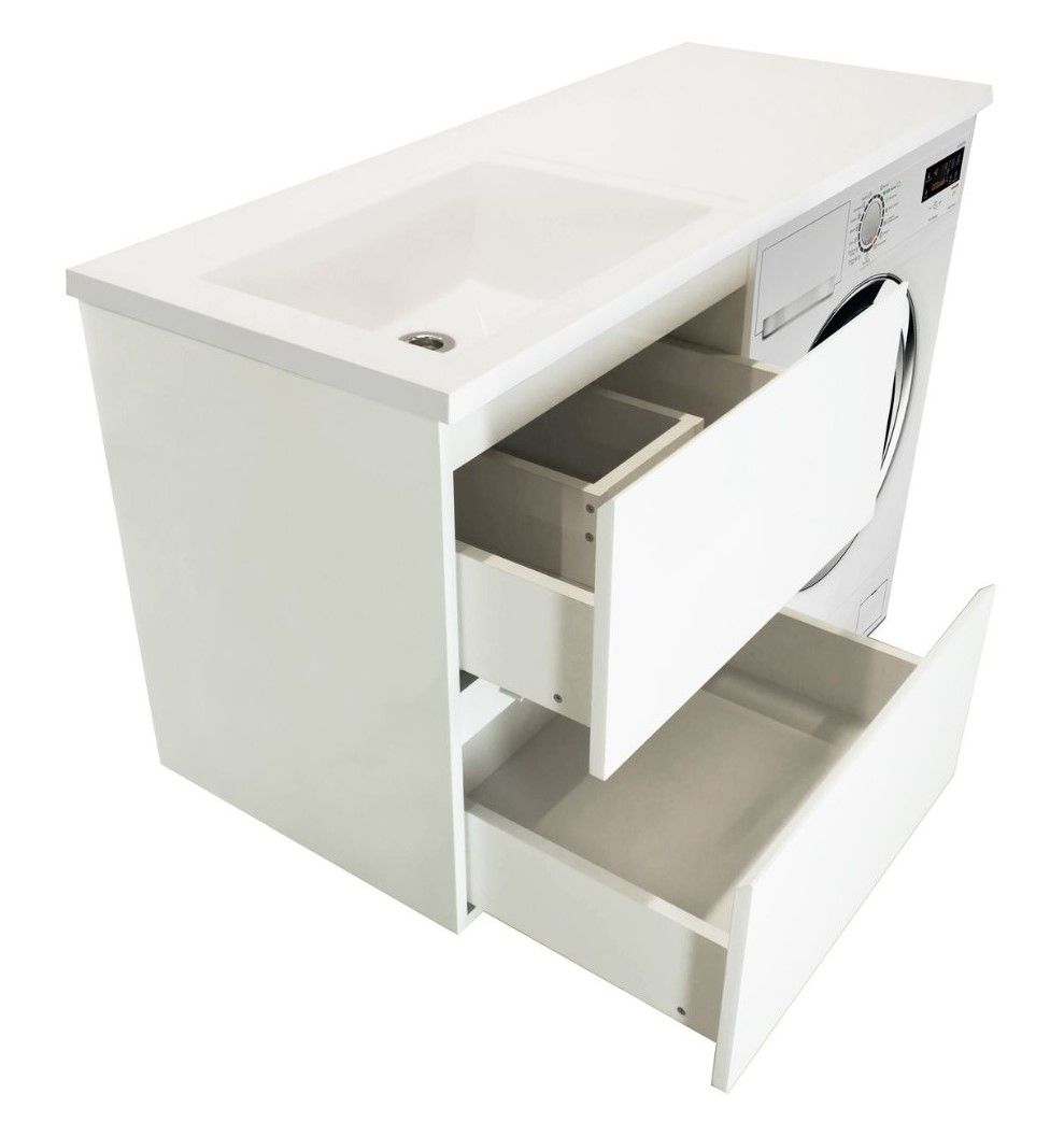 Коллекция мебели для ванной комнаты Dallas Luxe покоряет своей удивительной простой и функциональностью. Тумба укомплектована раковиной из литьевого мрамора с удобной чашей, стиральная машина устанавливается под столешницей. Широкий и вместительный ящик предназначен для крупных предметов. Подвесная система монтажа позволяет более эффективно использовать пространство, не мешает уборке в ванной комнате.
