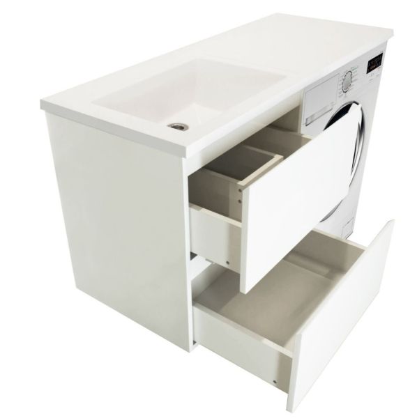 Коллекция мебели для ванной комнаты Dallas Luxe покоряет своей удивительной простой и функциональностью. Тумба укомплектована раковиной из литьевого мрамора с удобной чашей, стиральная машина устанавливается под столешницей. Широкий и вместительный ящик предназначен для крупных предметов. Подвесная система монтажа позволяет более эффективно использовать пространство, не мешает уборке в ванной комнате.