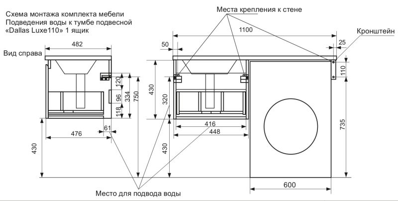 Подвесная тумба под раковину Эстет Dallas Luxe ФР-00002017 Л/П 110см длинный ящик белый купить