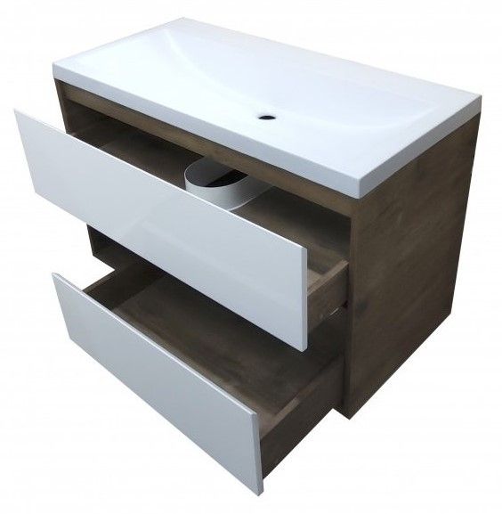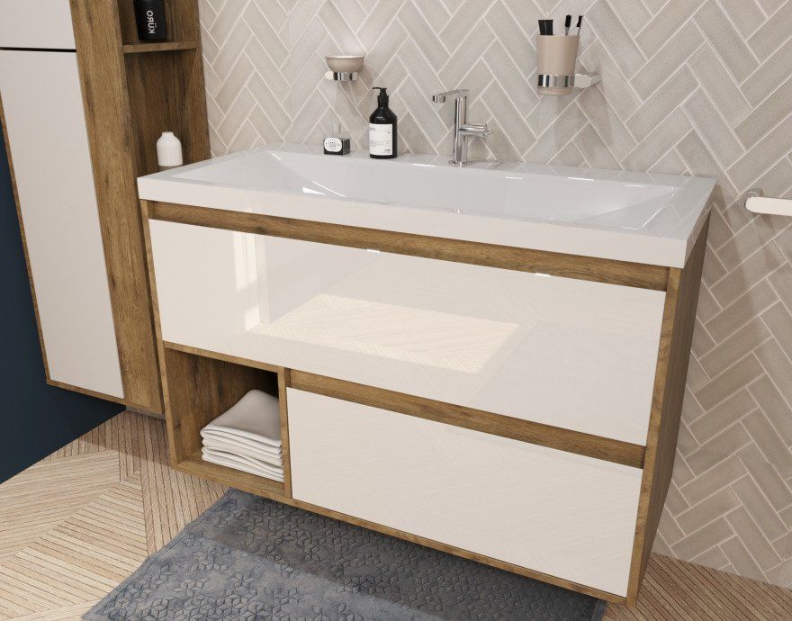 Подвесная тумба под раковину Эстет Monaco Wood ФР-00010676 100см два ящика белый/дуб рустикальный купить