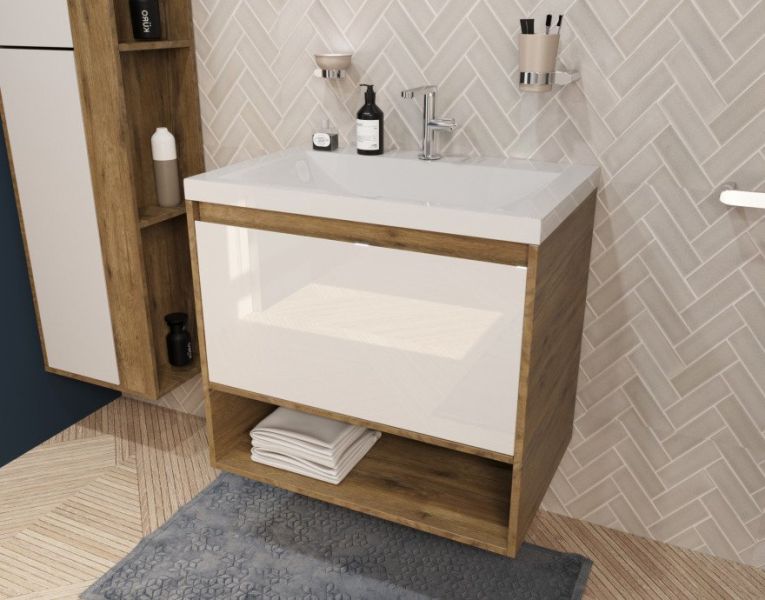Подвесная тумба под раковину Эстет Monaco Wood ФР-00010680 60см один ящик белый/дуб рустикальный