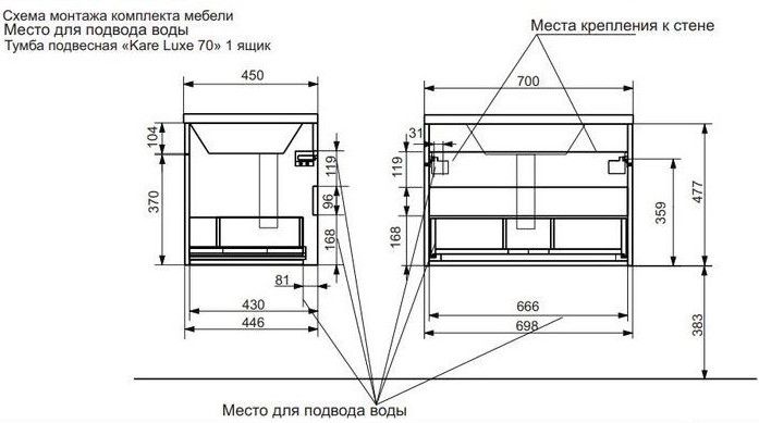 Подвесная тумба под раковину Kare Luxe ФР-00007069 70см один ящик белый