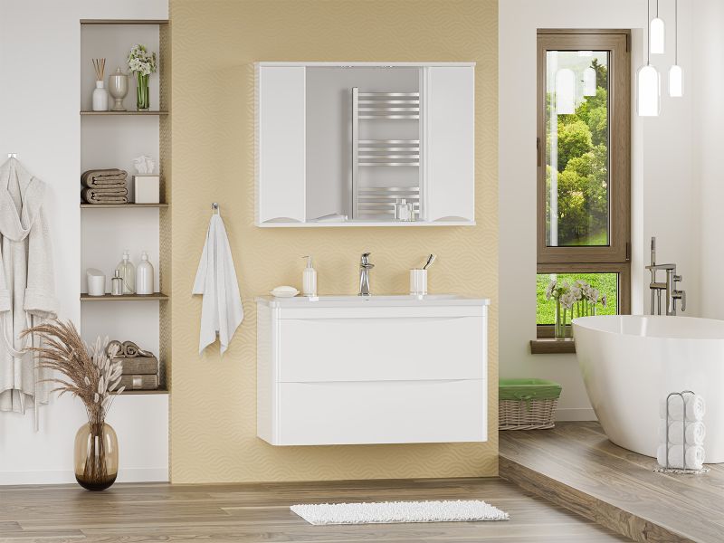 Подвесная тумба под раковину Misty Атлантик 100 см белый