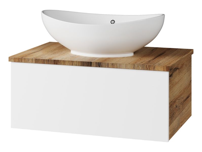 Подвесная тумба под раковину Misty Ива 70см белый/дуб Вотан