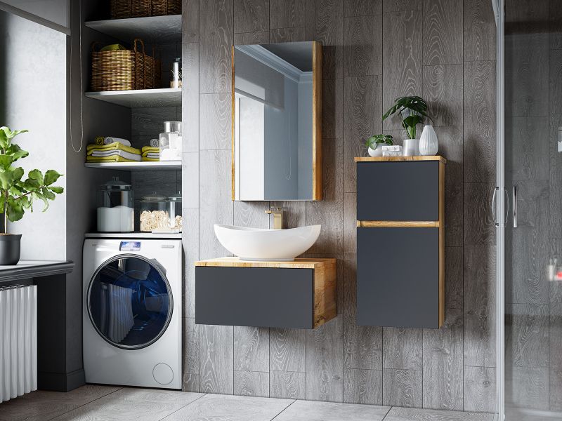 Подвесная тумба под раковину Misty Ива 70см графит/дуб Вотан