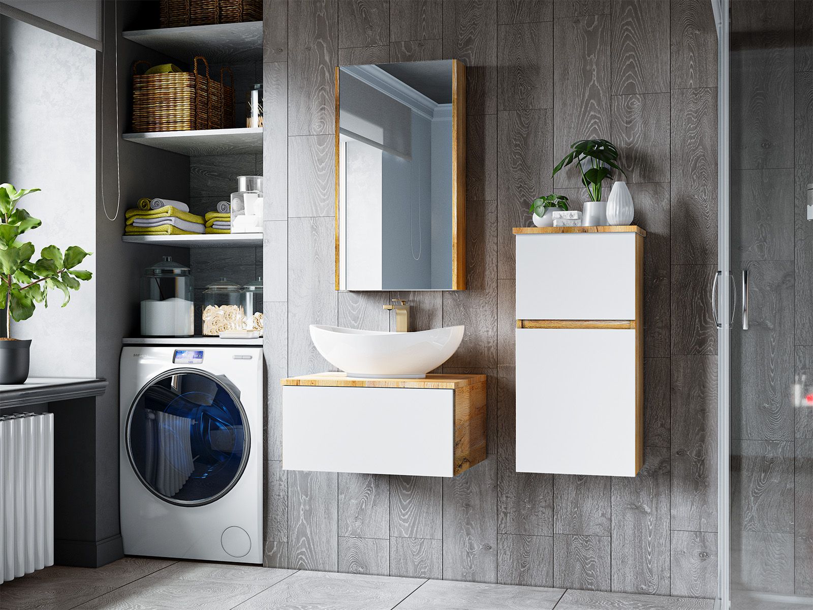 Подвесная тумба под раковину Misty Ива 90см белый/дуб Вотан