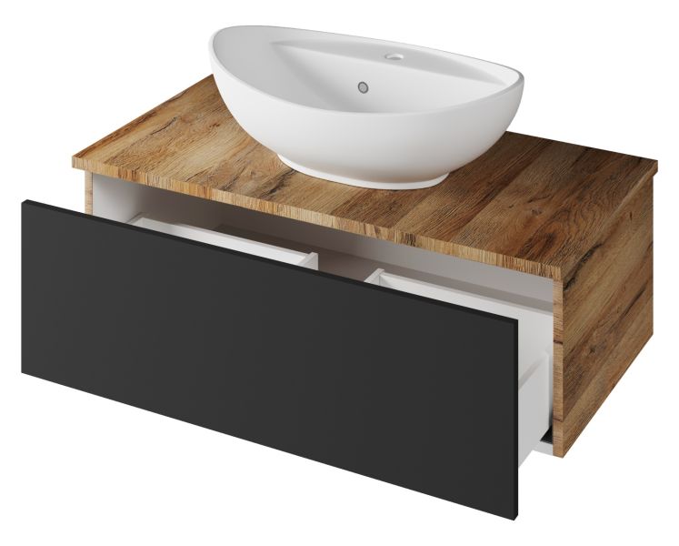 Подвесная тумба под раковину Misty Ива 90см графит/дуб Вотан