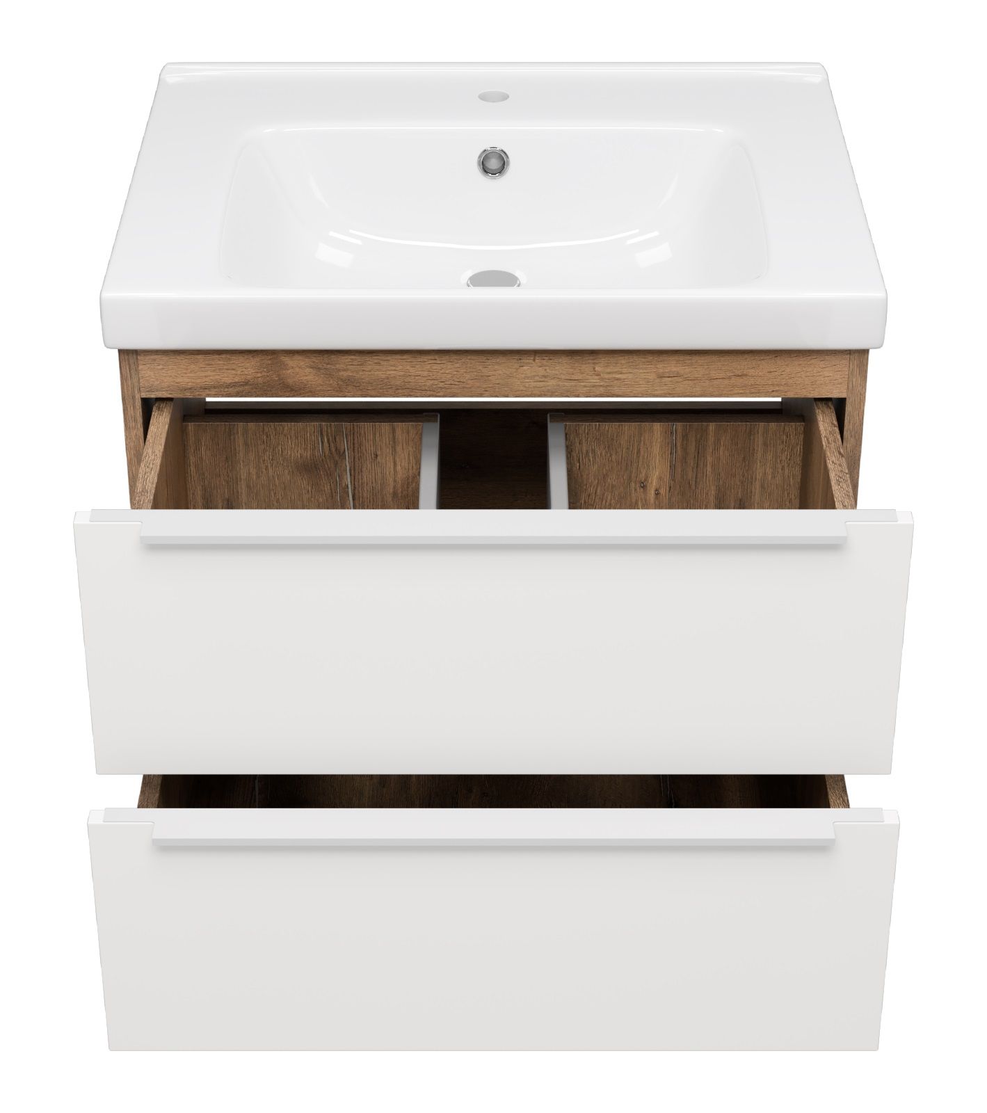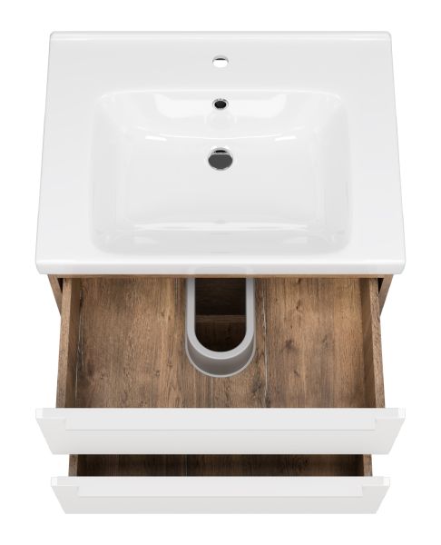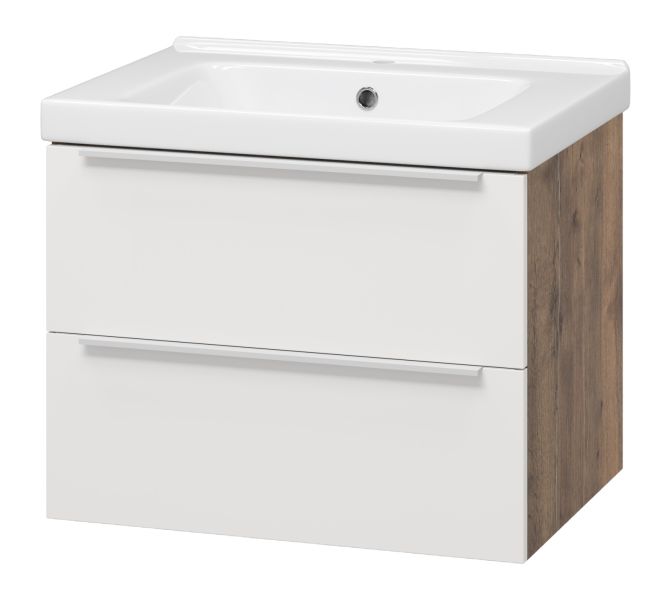 Подвесная тумба под раковину Misty Карат 65см белый/дуб Галифакс олово