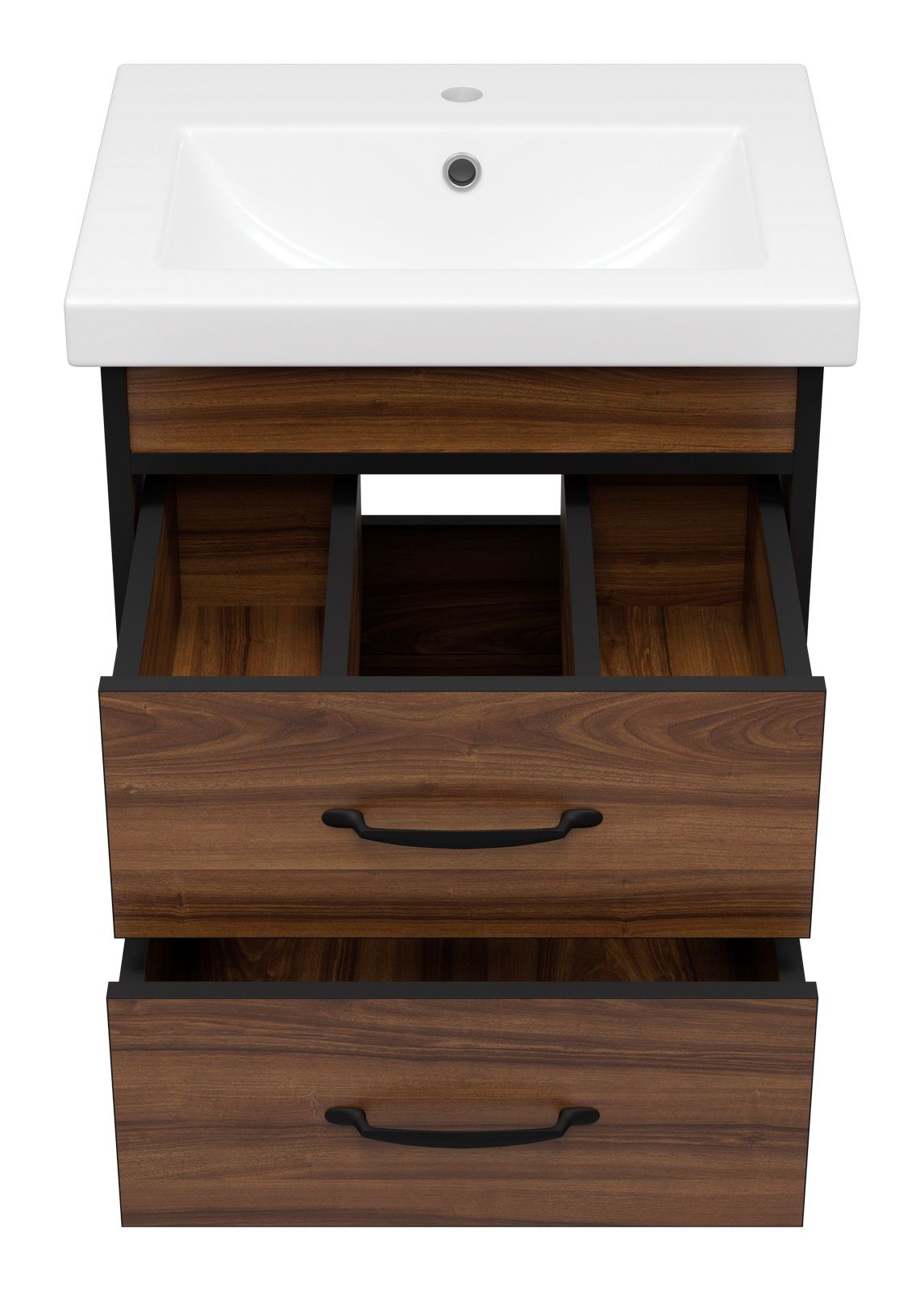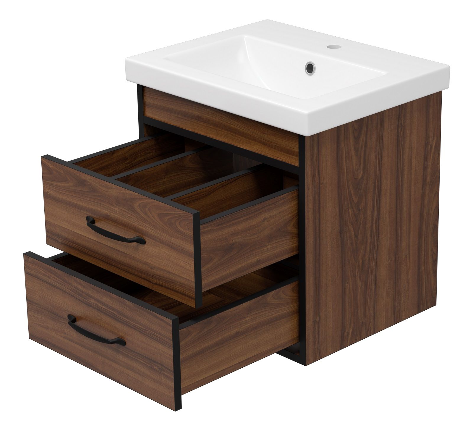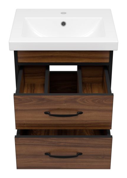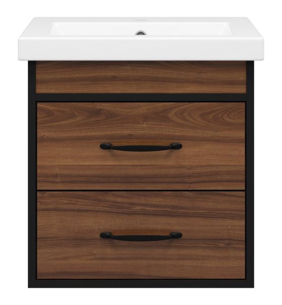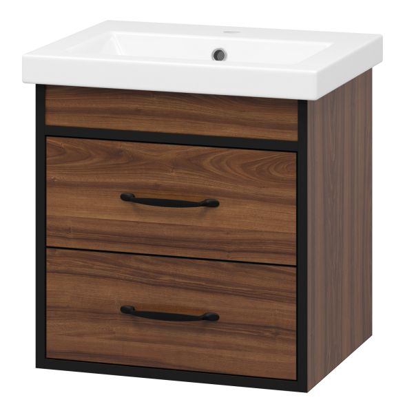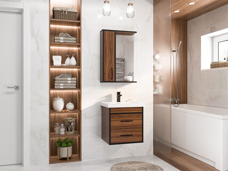 Подвесная тумба под раковину Misty Кедр 50см чёрный/орех