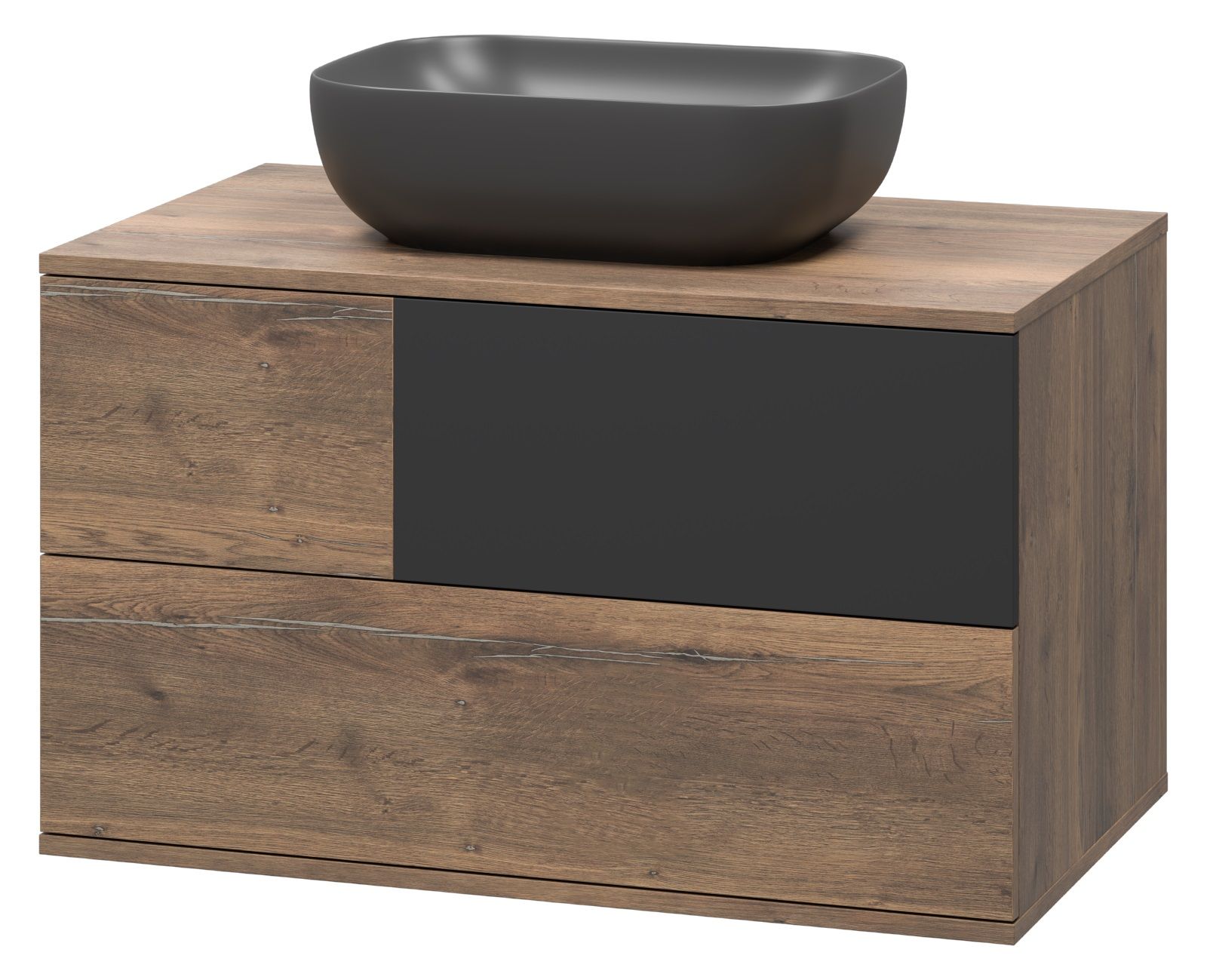 Подвесная тумба под раковину Misty Коломбо 80см дуб Галифакс/антрацит